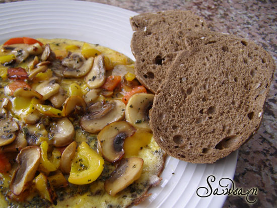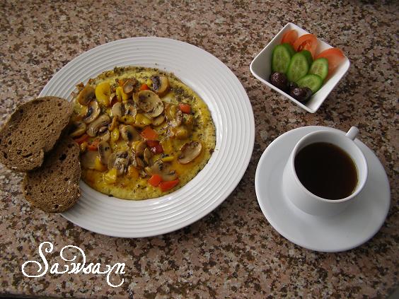 Add a couple of slices of bread, a cup of tea and some tomatoes cucumbers and olives and voalaaaa breakfast is served.