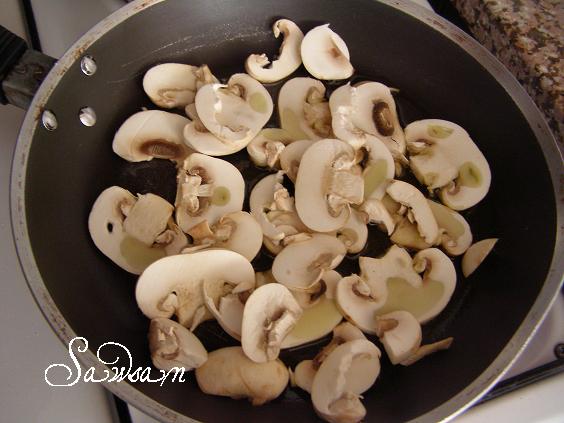Saute the mushrooms in the oil for 5 minutes..they will shrink considerably