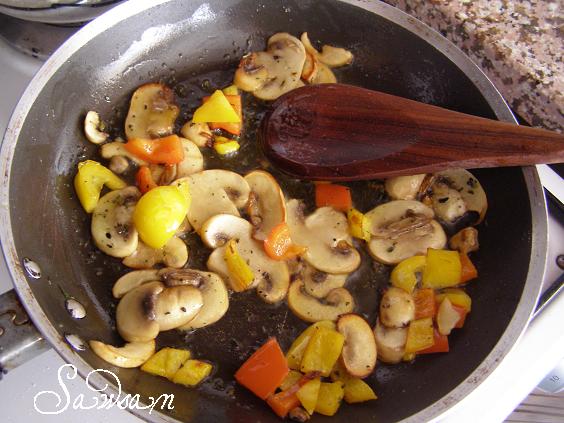 Add the pepper and herbs. (Once the herbs hit the hot oil your kitchen will be filled with a heavinly smell ). Saute for another 5 minutes