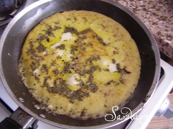 Within 5-7 minutes the top will set by the heat trapped under the lid and you’ll get a fluffy delicious omlette. You can sprinkle some sharp chedder if you like.