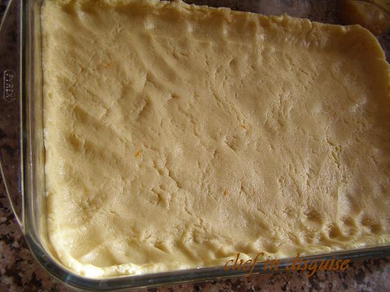 Bake in a preheated oven at 180 C on the middle shelf for about 45 minutes or untill the base is golden brown (I bake it in a Pyrex pan, that way I can see when the bottom is browned)