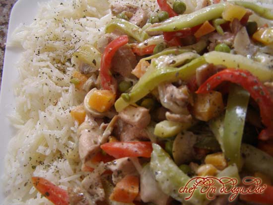 The recipe is versatile, you can use whatever vegetables you have on hand. The marjoram adds a wonderful depth of flavor but you can use fresh or dried basil instead. I serve it with rice but it works beautifully with fettuccine.