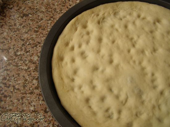 The crust I’m using here is my official crust recipe. It is the recipe used in Sizzling chicken pizza and Home made pizza with California oil sauce I got it from my friend Zahra and it is AMAZING! I make it using pizza flour and the result is as good as (if not better) restaurant pizza. I have made it with all-purpose flour when I’m out of pizza flour It is still really good that way.