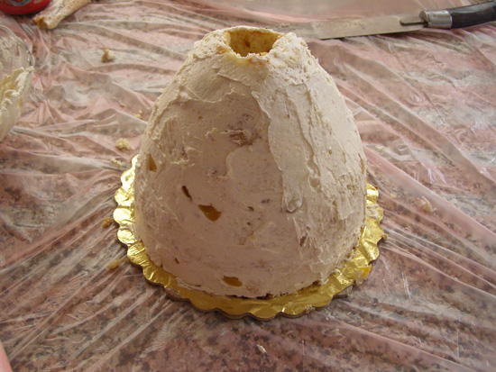 Next comes coating the cake with a layer of butter cream (recipe follows)