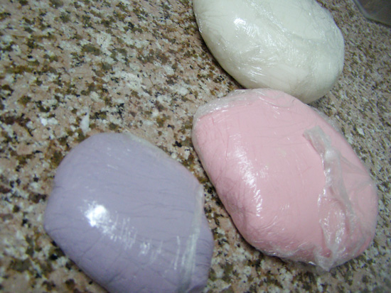 Roll the pink fondant the same way you rolled the white fondant but this time we need it a little shorter.
