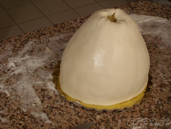 Finally I added a bow in the back and a necklace of white fondant in the front.