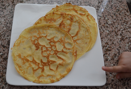 I am glad to report that the kids loved their breakfast but sadly only one crepe made it to meet the Nutella. The rest were eaten hot off the pan interrupted with mmmm and ahhh… 🙂