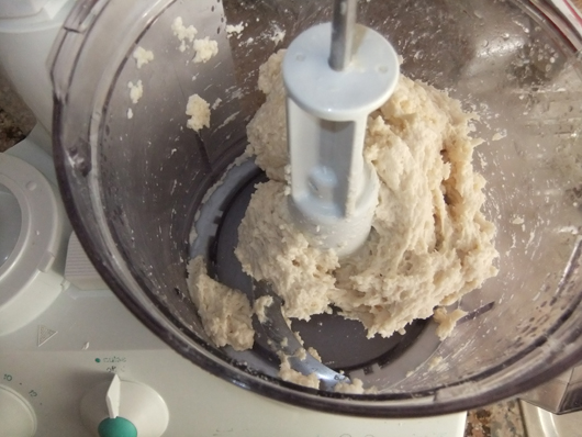 4. Add water & oil mixture with mixer on low speed, mix until you get a soft dough, if it appears dry add a little more water
