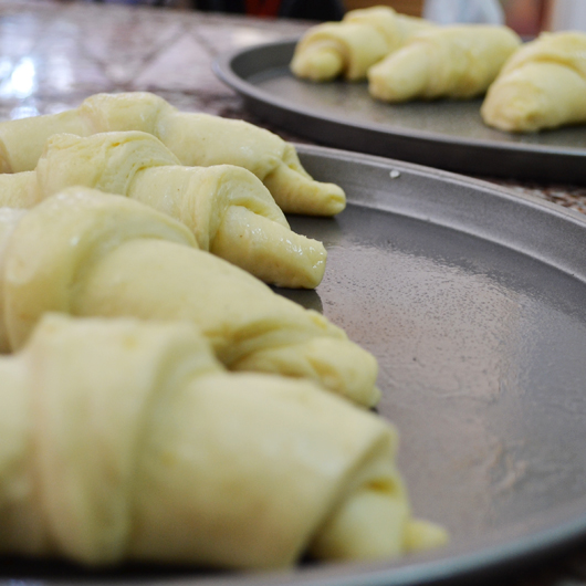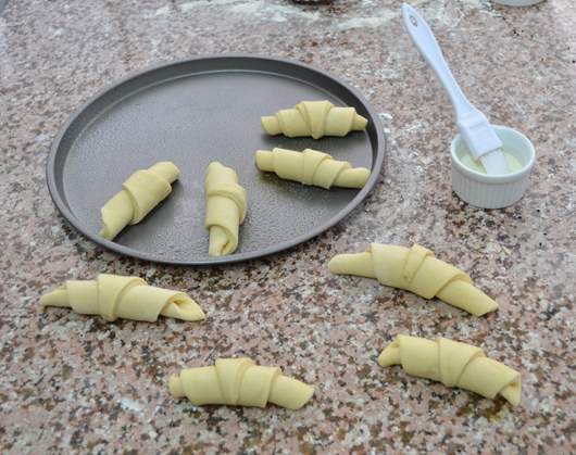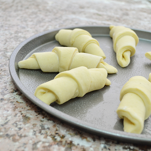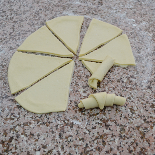 Roll wedges starting at wide end; roll gently but tightly.