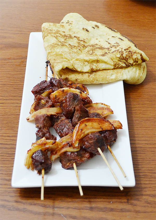 I served these skewers with humus and some flat bread and a salad, you can serve them with some rice,arugula salad or potato salad