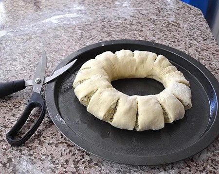 Using a scissor or a knife make cuts that go 2/3 of the way through the dough