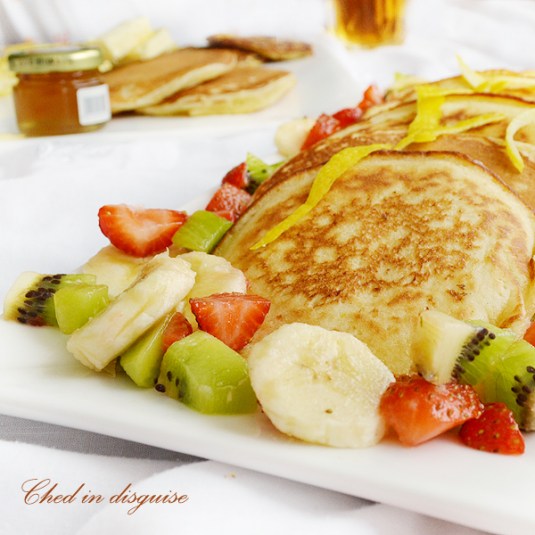 I received a sample of Crown maple syrup (Grade A medium amber) and decided to start my experiments with the simple, using it on top of lemon ricotta pancakes.