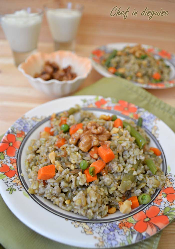 Freekeh with mixed vegetables (virtual vegan potluck)