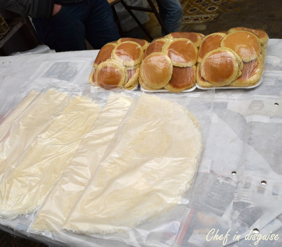 I loved watching this guy make koolaj, which are paper thin sheets of dough, something very similar to phylo. Koolaj is usually stuffed with nuts or cheese, it is then baked, then drizzled with a rosewater scented syrup. The outer layers of dough become crisp and crunchy while the inner layers absorb the syrup and take on the spices usually mixed with the filling. The result is simply irresistible!