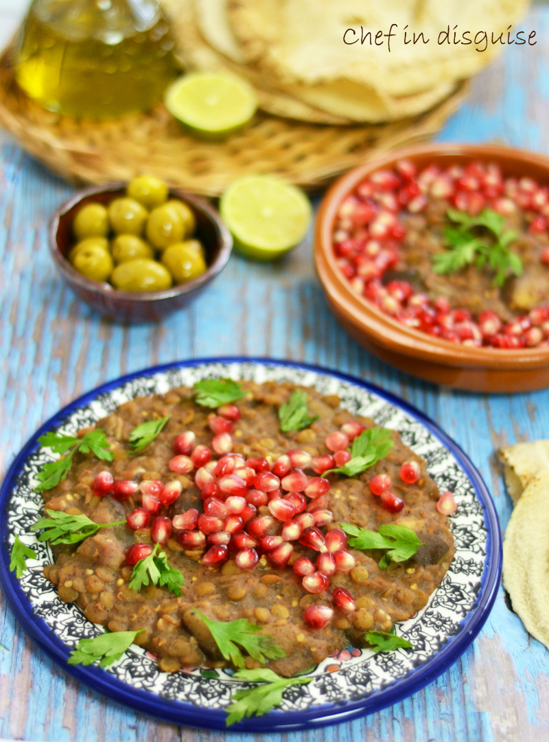 Romanieh (lentils and eggplants cooked in pomegranate sauce)