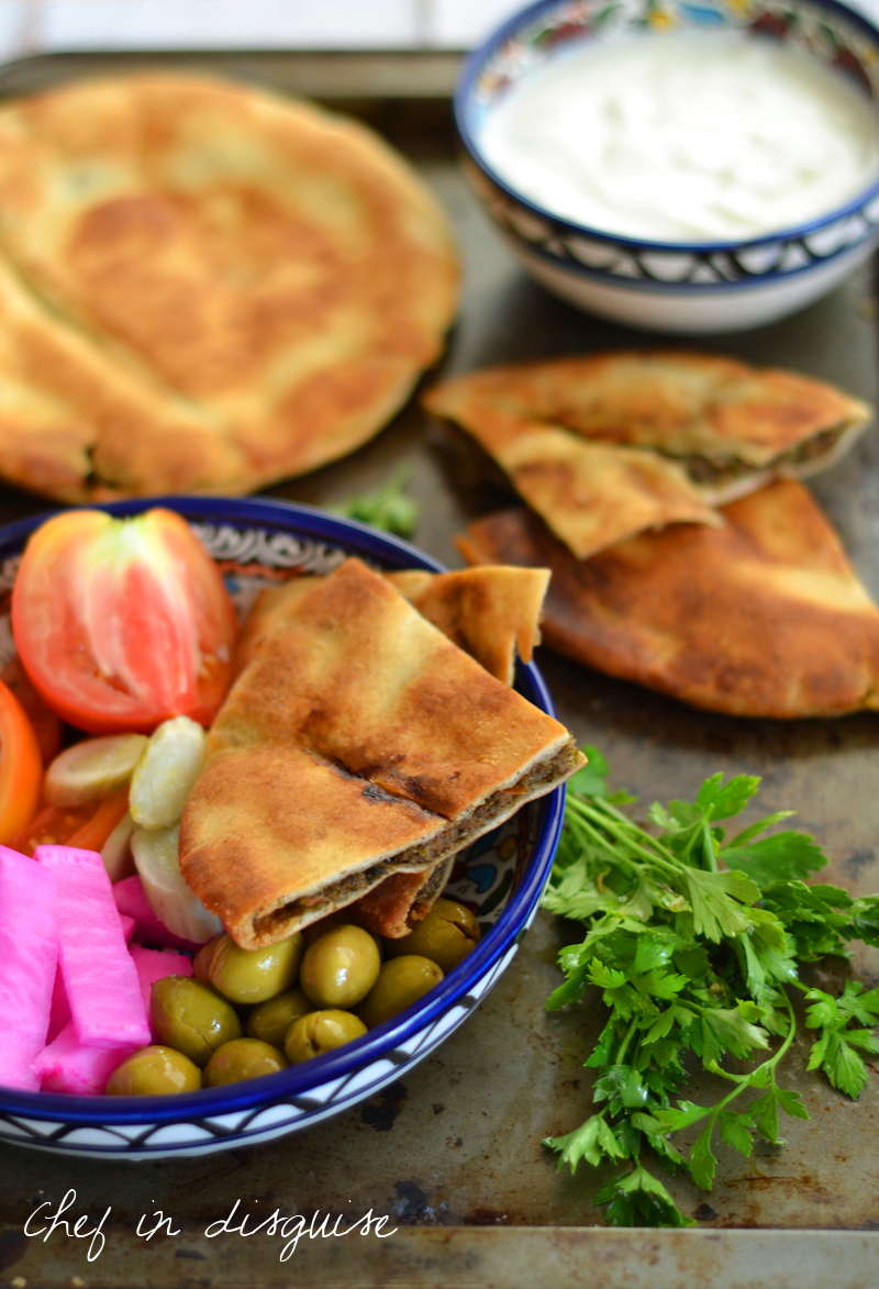 Arayes are grilled pita bread sandwiches filled with minced meat, tomatoes,onions, parsley and a melody of spices.They are popular street food items throughout the Middle East going by different names in different countries.
