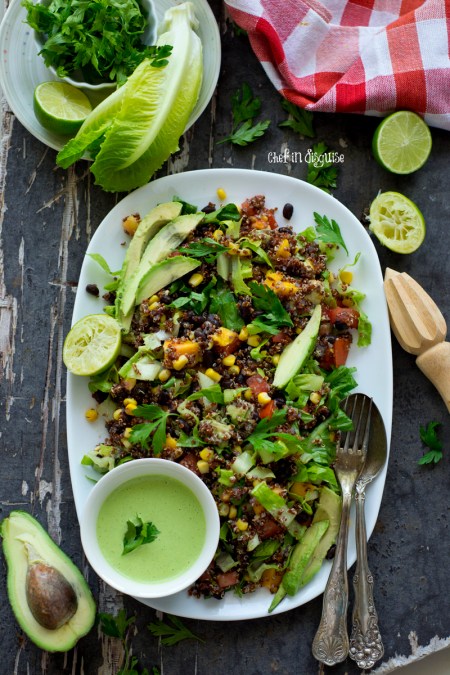 Today’s quinoa salad is quick and easy. It is actually one of my go to lunches lately  topped with some grilled chicken or shrimp. The recipe is actually a copycat recipe for a salad we love at one of the local restaurants. The combination of colors, textures and flavors is so refreshing!