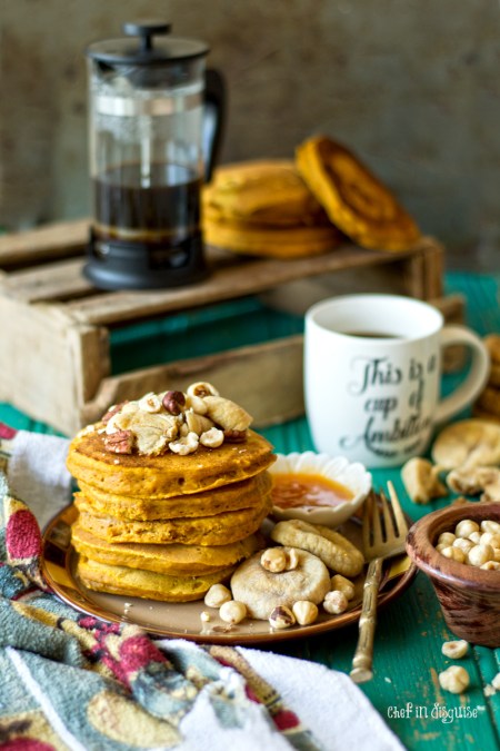 If you love pumpkin spice cake or pumpkin spice anything, you need to give these pancakes a try. The pumpkin puree gives them a beautiful warm color, add the spices and the smell alone is worth waking up 30 minutes earlier to make these beauties